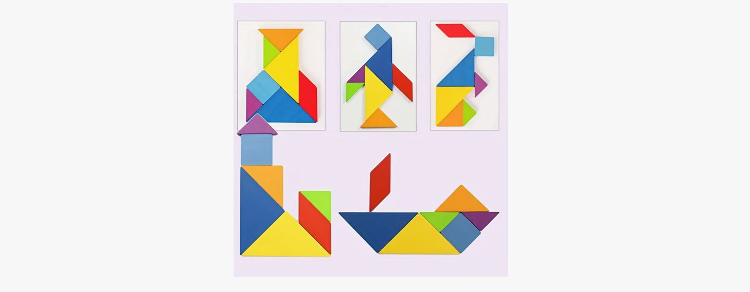 Juegos creativos: como los coloridos tangrams de madera Montessori, que mejoran la imaginación espacial de los niños y las habilidades de reconocimiento de formas a través del ensamblaje gráfico.